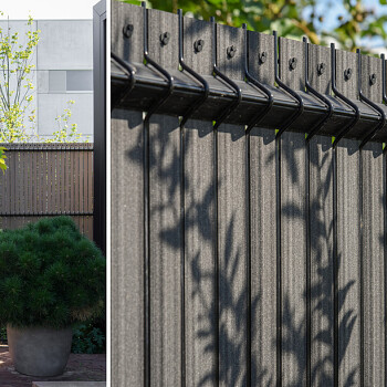 System Duofuse Listwa Separacyjna dostępny jest w dwóch ponadczasowych kolorach. Od 6 do 8 tygodni po instalacji mogą wystąpić nieznaczne różnice w kolorze, jednak po krótkim czasie odcień listew ustabilizuje się i pozostanie niezmienny. Po wielu latach użytkowania ogrodzenie będzie wyglądało jak nowe.
