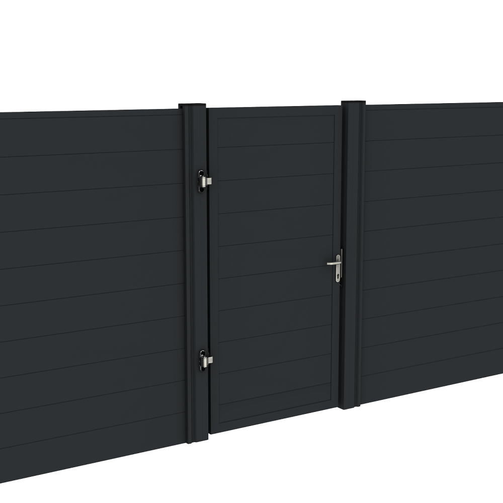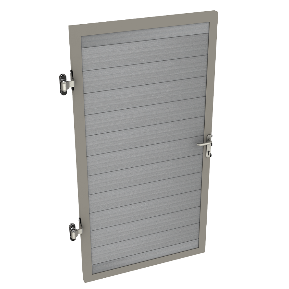 System kompozytowych ogrodzeń pełnych Duofuse obejmuje również furtki i słupki do montażu o tej samej konstrukcji: są one bardzo praktyczne i doskonale pasują do ogrodzenia z kompozytu drewnianego. W przeciwieństwie do furtek drewnianych, furtki z kompozytu Duofuse nie wymagają konserwacji i nie blokują się w wyniku wypaczania. Furtka jest kompletna, zawiera też wszystkie niezbędne mocowania (zawiasy).